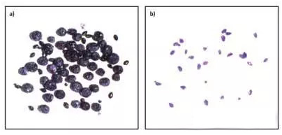 圖1:a)使用白色背光照明檢測藍(lán)莓中的金龜子,藍(lán)莓和金龜子可以同時被看到。b)使用紅外背光照明,紅外光可穿透藍(lán)莓,被金龜子吸收,因此即使是被藍(lán)莓遮住的金龜子也能被檢測出來。